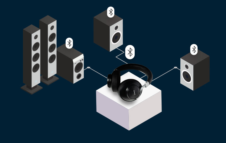Vous pouvez également travailler votre environnement sonore en connectant plusieurs haut-parleurs Bluetooth à un seul smartphone ou autre source audio. Vous pouvez alors créer un ensemble de son surround pour une expérience sonore plus immersive.